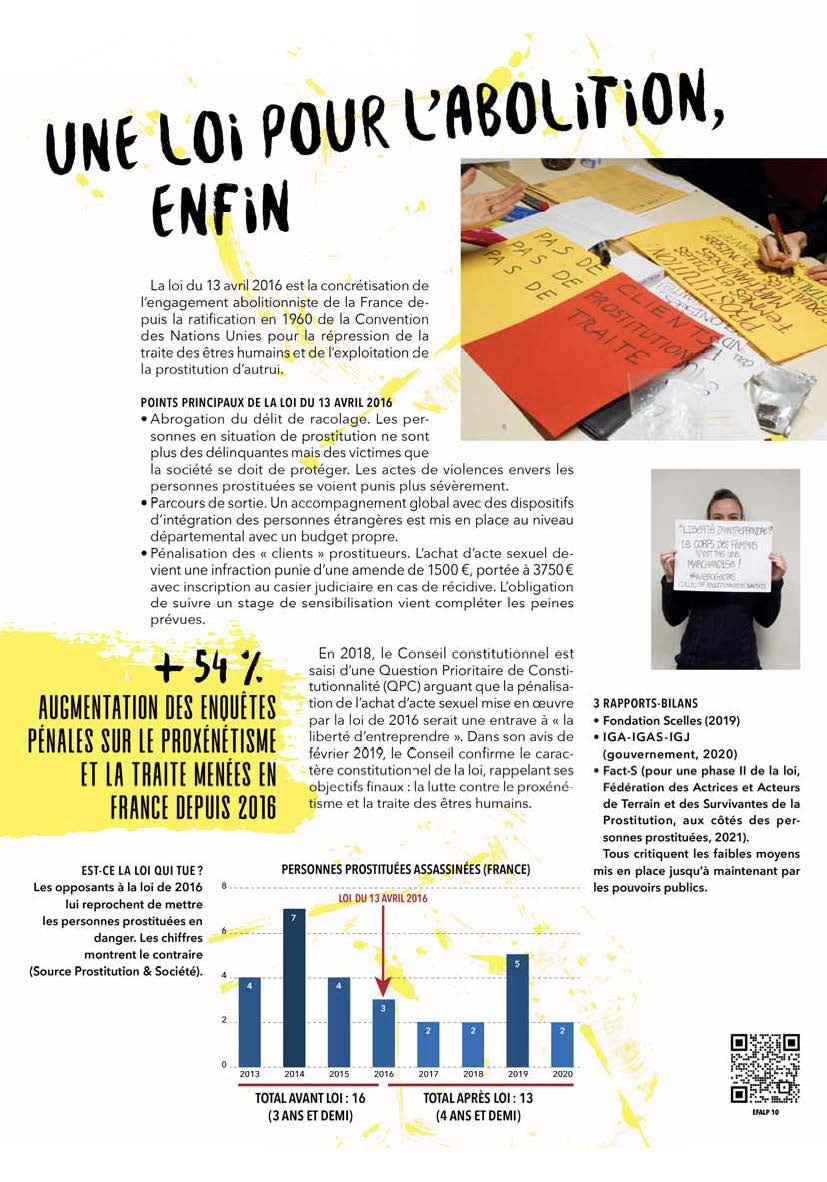 La loi du 13 avril 2016 est la concrétisation de l’engagement abolitionniste de la France depuis la ratification en 1960 de la Convention des Nations Unies pour la répression de la traite des êtres humains et de l’exploitation de la prostitution d’autrui.